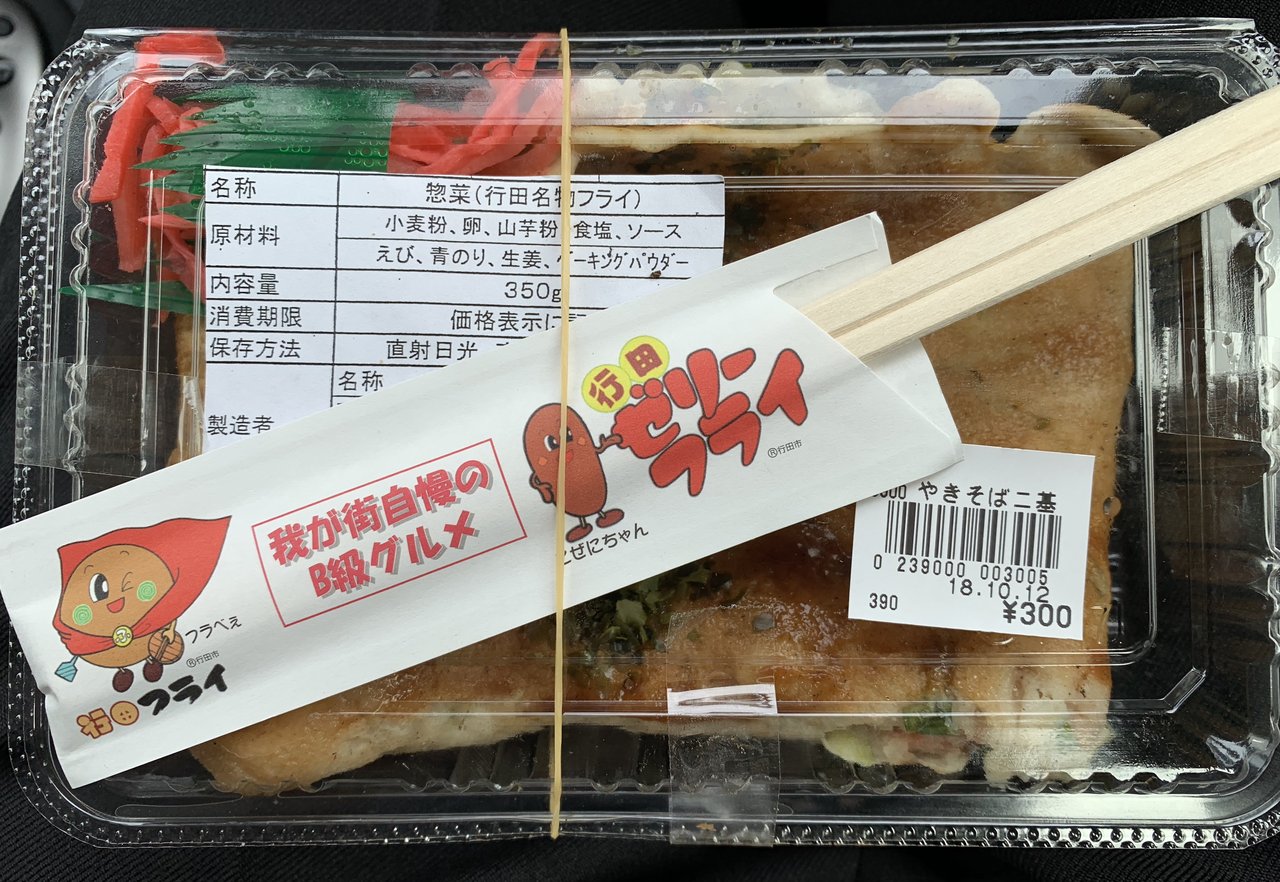 隣接する売店で行田名物のゼリーフライを購入して休憩所で食べたのでありました!ゼリーフライのイメージは、ハンバーグやコロッケのような形のモノだったので、少し拍子抜けがしましたが、形違えどゼリーフライはゼリーフライですからね!!・・・というのは素人の考え!実は私が食べたのはフライで、ゼリーフライではないようです^^;;そもそも、ゼリーフライという名前自体、形が銭(ゼニ)のようだからという事に発するそうですし!それならば、私が食べたのは、ゼニフライならぬサツフライだし 😏