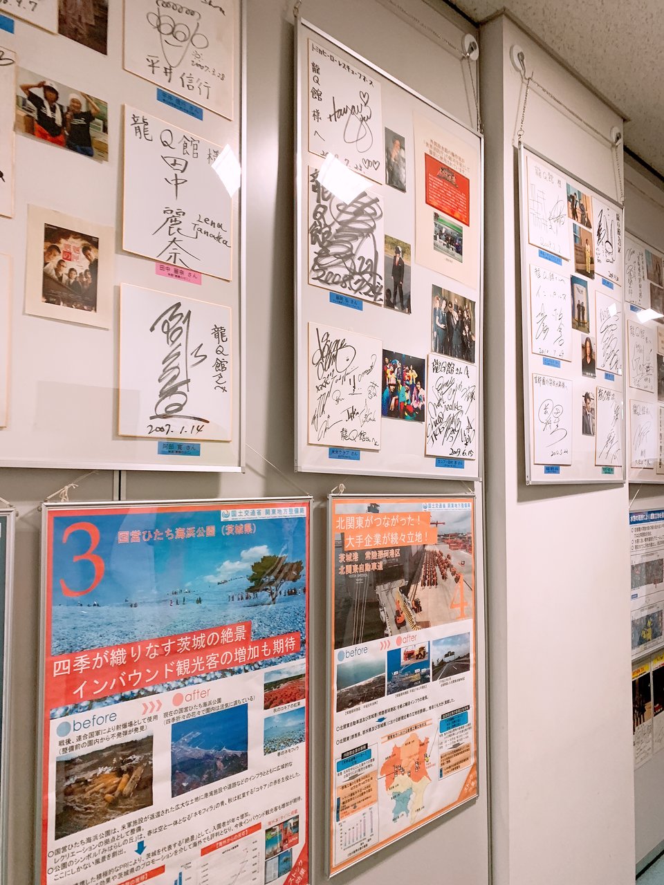 廊下には、今までこの見学会に参加した数多くのセレブの色紙が所狭しと貼られています。みんなテレビの取材で来たのかな 🤔