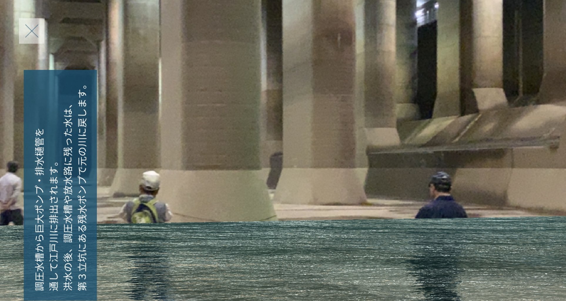 専用アプリをインストールすると、実際に水がこの神殿を埋め尽くす時の映像をARで見ることができます。おじちゃんも溺れる寸前です!