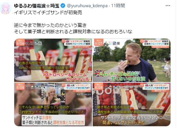 この甘いサンドイッチが、今後イギリスの食卓に定着するのか、そして気になる税金の行方はどうなるのか。これからも目が離せませんね。